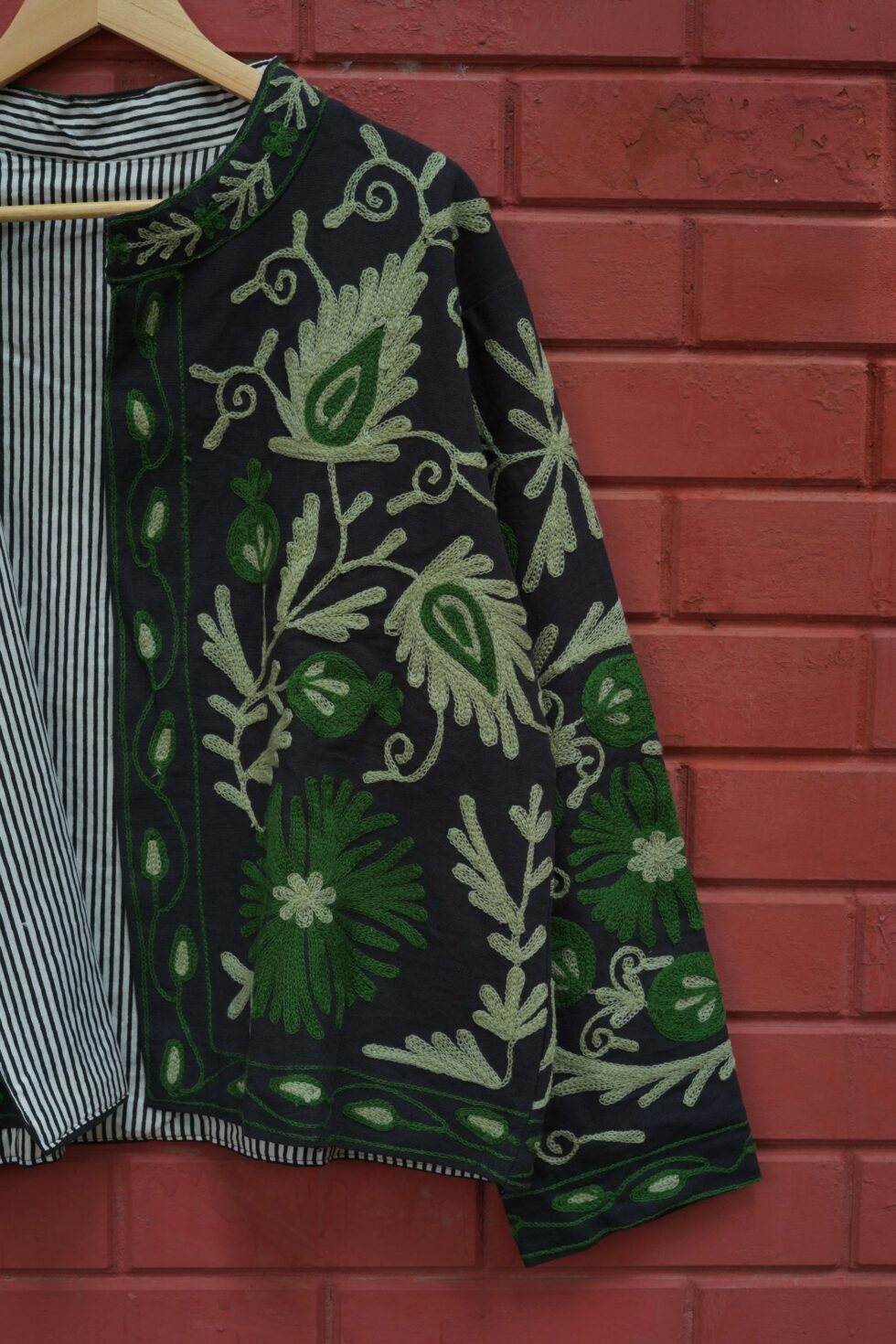 Luxurious velvet jacket featuring intricate Suzani embroidery. Perfect blend of elegance and tradition — ideal for festive and ethnic occasions.