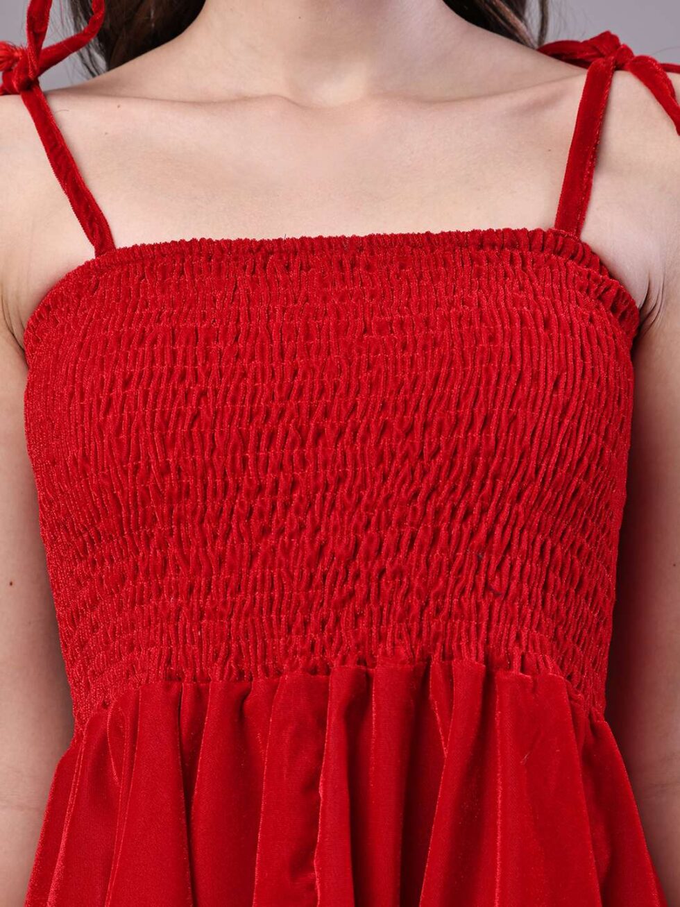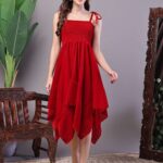 Effortlessly stylish dress with a vibrant abstract print, tie-up shoulder straps, and a chic high-low handkerchief hemline ? perfect for casual days or evening gatherings.